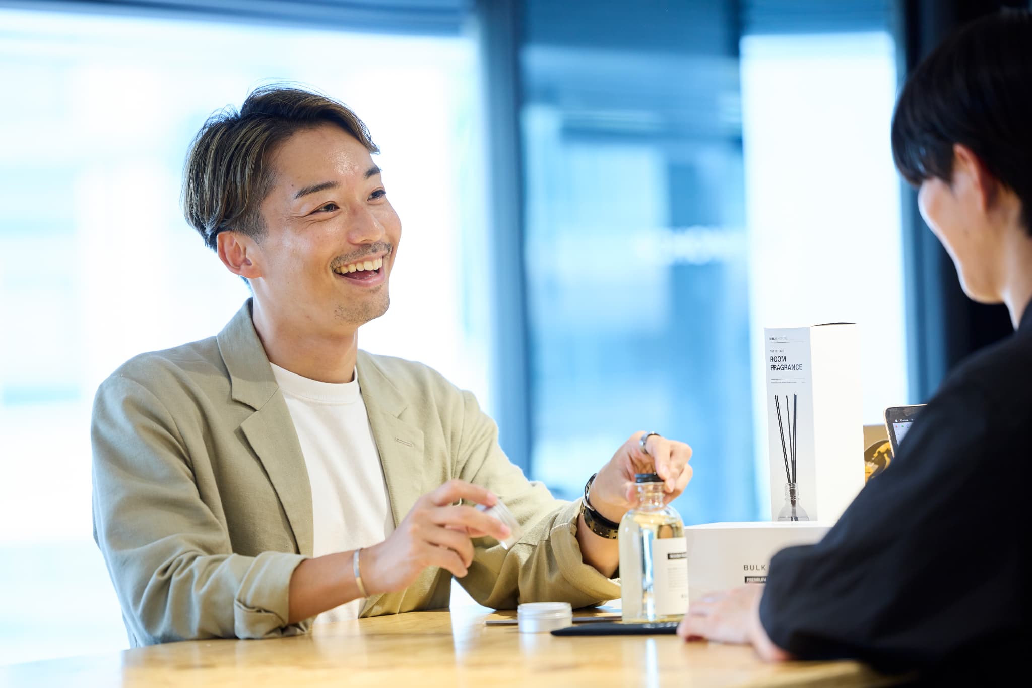 飲食店コンサルタントとしての経験を積み、次のキャリアステージを模索していた時、縁あってご紹介いただいたのがバルクオムでした。職種は未経験でしたが、日頃から愛用していたこともあり、「このブランドだからこそ自分の強みを生かせる」と感じたんです。好きなブランドだからこそ挑戦する覚悟が固まり、入社を決意しました。
